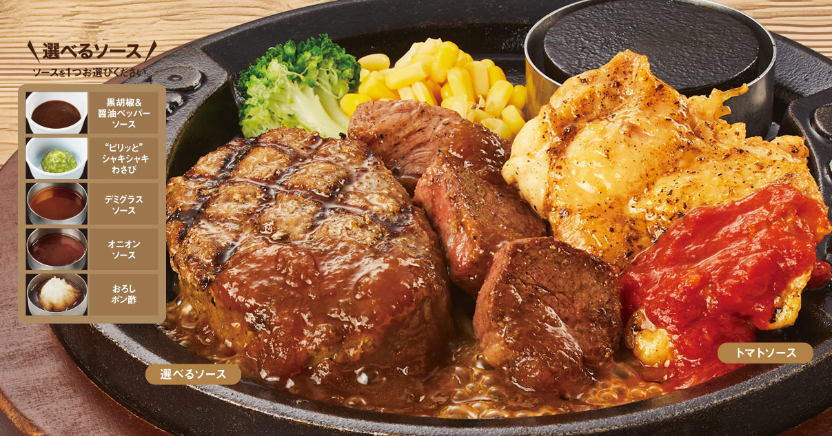 "牛肉100%!!" 弾丸ハンバーグ&ビフテキ&グリルチキン
