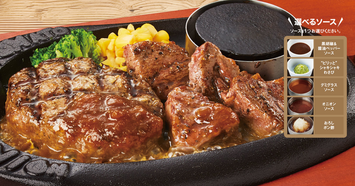 "牛肉100%!!" 弾丸ハンバーグ&ヒレサイコロステーキ