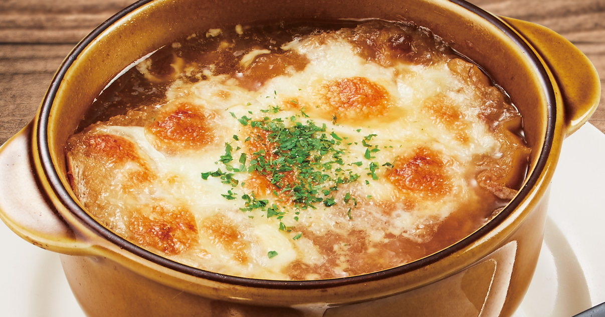 "じっくり炒めた玉ねぎの旨み"オニオングラタンスープ