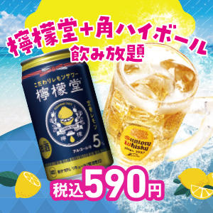 2022.07.12 じゅうじゅうカルビ 期間限定!檸檬堂飲み放題が帰って来ました!今回は檸檬堂3種「定番レモン・無糖レモン・うま塩レモン」さらに!サントリー角ハイボールがプラスされました!!なんと590円(税込)で飲み放題です!暑い夏を乗り切りましょう!
