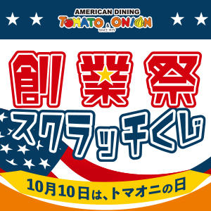 2021.10.01 トマト&オニオン 「創業祭クイズキャンペーン開催♪正解者の中から抽選で10名様に3,000円分のお食事券をプレゼント!クイズに答えてお食事券をGETしよう!応募締め切り:2021年10月17日」