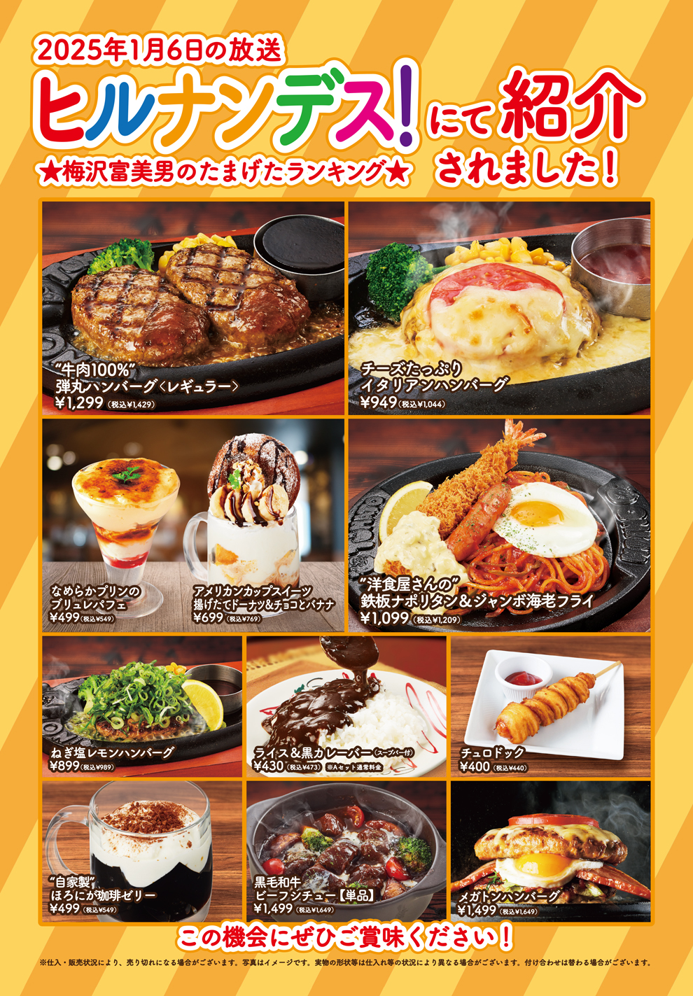 ※店舗や時期によって価格等が異なる場合やメニューの